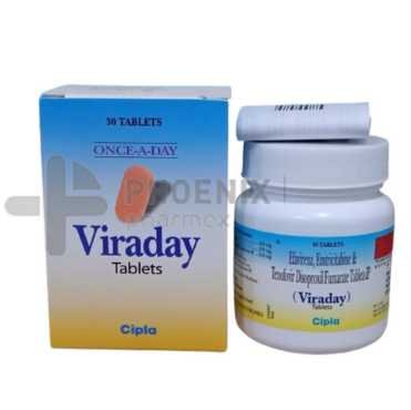 Viraday Tablet contains Emtricitabine and Tenofovir disoproxil fumarate, which are both nucleoside reverse transcriptase inhibitors (NRTIs). These drugs work by blocking the reverse transcriptase enzyme an essential enzyme HIV needs to make copies of itself.